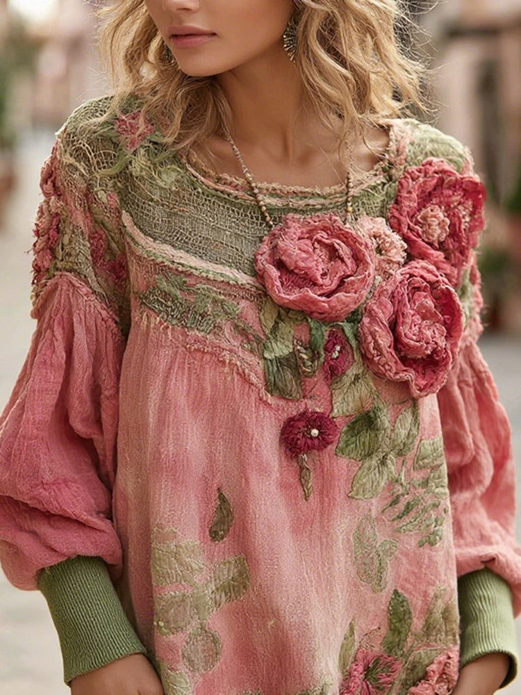 Sweat-shirt bohème à fleurs et colorblock pour femme, col rond, confortable et décontracté